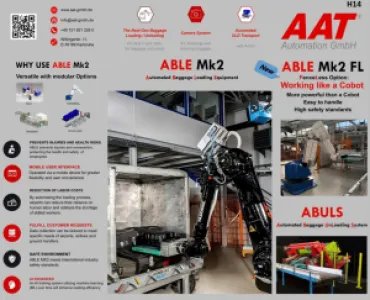 The ABLE Mk2 (Automated Baggage Loading Equipment Mark 2) from AAT Automation GmbH sets a new benchmark in fully automated baggage handling. Building on the proven success of its predecessor ABLE(Mk1) which has been reliably operating at two of the worlds largest international airports for over a decade, processing more than 60 million pieces of baggage, the new generation delivers significant technological advancements.